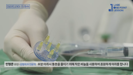 시술 과정은 체계적으로 이루어집니다. 먼저 땀샘이 밀집된 부위를 기준으로 시술 영역을 설정하는데, 이는 환자의 체형과 털의 분포를 통하여 커스텀하여 설정하게 됩니다. 그 다음 얇은 바늘을 사용해 국소 마취를 시행하여 시술 중 통증을 적게합니다. 마취가 끝나면 시술 부위를 작은 구획으로 나누어 마킹을 하게 되며, 이는 누락이나 중복 없이 촘촘하게 시술하기 위한 중요한 단계입니다. 이후 미라드라이 팁을 마킹된 순서에 따라 겨드랑이에 대어 에너지를 전달합니다. 보통 한쪽을 먼저 시술하고 반대쪽을 이어서 진행하며, 양쪽 시술이 끝나면 연고를 바르고 귀가할 수 있습니다. 전체 소요 시간은 약 1시간 반 정도입니다.