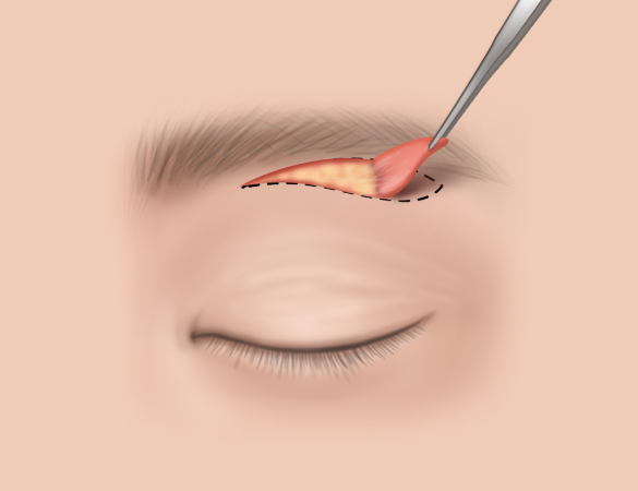 An incision is made just below the eyebrow